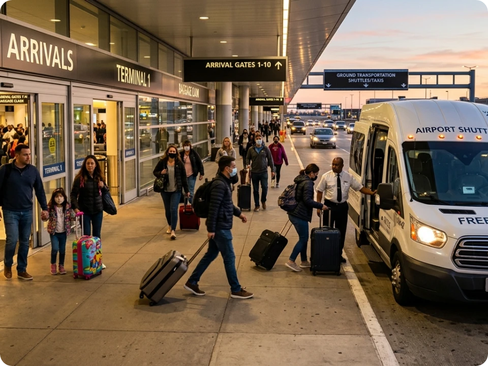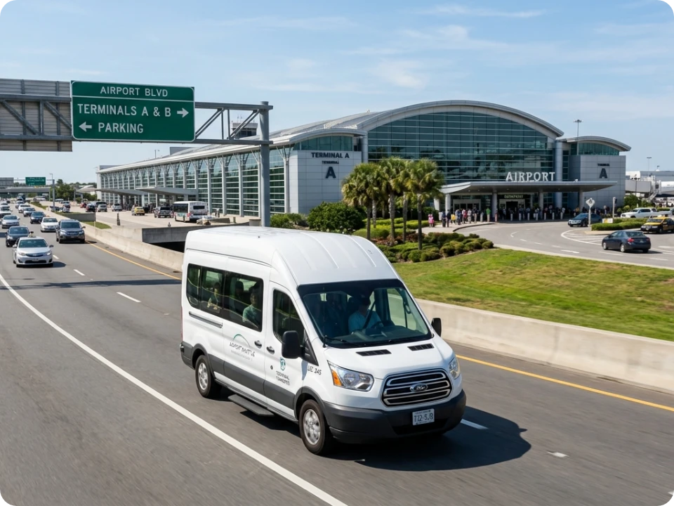 Po zaparkovaní vás pohodlne odvezieme priamo k terminálu letiska M. R. Štefánika. Transfer trvá len 5 minút a je úplne zadarmo — je zahrnutý v cene parkovania. Kapacita transferu je maximálne 4 osoby.